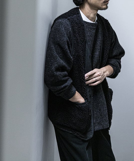 今回は、ウールを使用したニットライクな生地でありながら、「肌触りの良い着心地」、そして「洗える」事をポイントに企画しました。