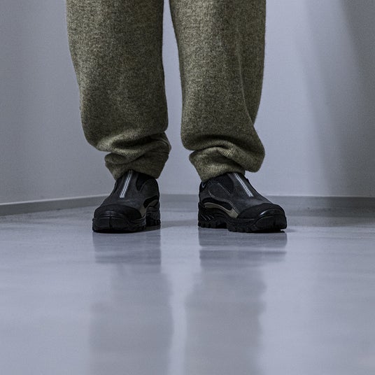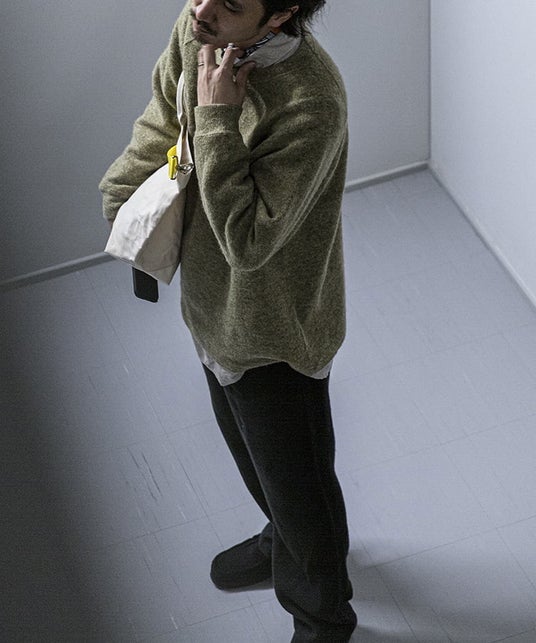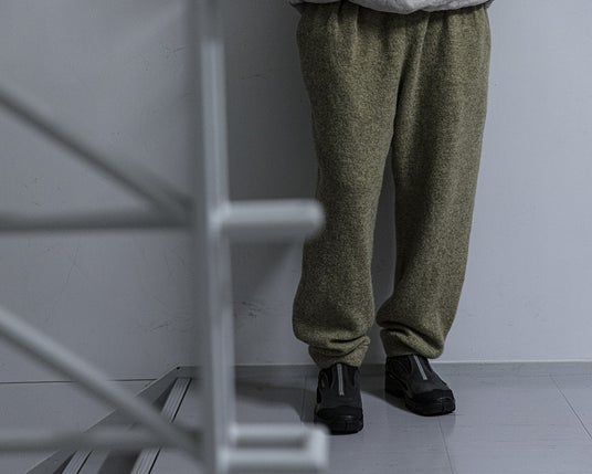24AW期は国内生地メーカーと協業し、ウールとコットンを組み合わせたクォーターゲージファブリックを別注生産。この生地を使用して、ラグランスリーブプルオーバーとイージーパンツの2型をリリースしました。