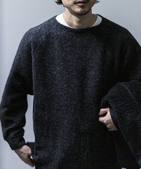 ゆとりのあるネック周りと深いアームホールが特徴のラグランプルオーバー。裾の窄まりのない、ゆったりとしたシルエットもニットとは少し違った魅力です。