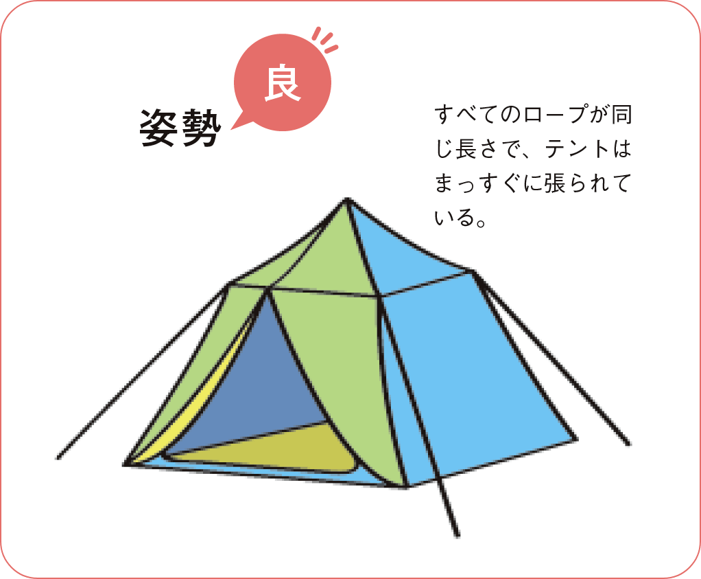 その力について、イメージしやすいようにテントを例にして説明しましょう。テントは、支柱と四方にバランスよく引っ張るロープによって支えられています。もし、ロープの長さが均一でなかったらどうなるでしょう。1本でも短いロープがあれば支柱ごとそちらに傾き、テント全体にゆがみが生じます。