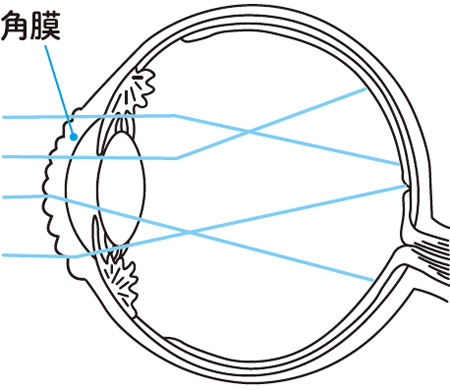 「乱視」にはいくつかの種類がありますが、最も一般的なのは「角膜乱視」です。目の表面にある角膜は本来、球面に近い均一なカーブを描いています。しかし、その一部がゆがむと、目から入った光が網膜上で一点に集まらず、物が二重に見えたり、ぶれて見えたりするのです。