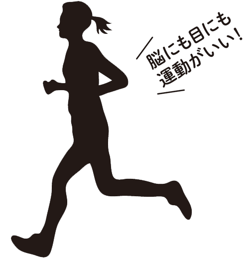 ランニングやウォーキングなど、適度に体を動かすことは脳を活性化させます。運動で血流がよくなることで脳に酸素や栄養素が行き渡り、集中力・記憶力もアップ。脳の疲れやストレスがすっきり解消され、結果的に目もよくなります。