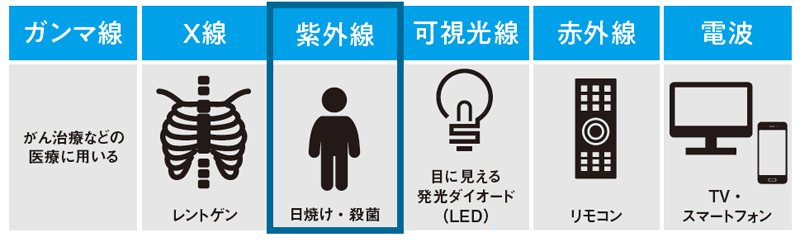 太陽の光は、目で見ることのできる可視光線と、見えない紫外線や赤外線から成っています。紫外線はビタミンDの生成を助けるなど、健康上の役割もありますが、日焼けやシミ、しわなどの原因にもなります。