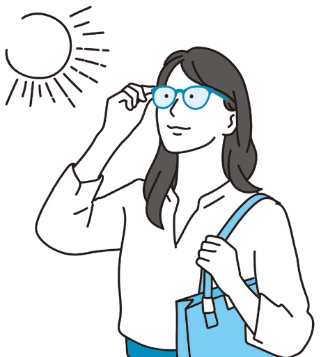 実際にかけてみると、ファッション性だけでなく「視界の違い」や「軽さ」「耳への触り具合」など、使用感がそれぞれ異なります。目全体を覆うタイプ、調光が可能なものなどもあるので、用途に合った使いやすいサングラスを選ぶことが大切です。ただし一番重要なのは、紫外線を遮断するUVカットのレンズかどうかです。必ずタグなどを確認して、「UVカット99.9%」などのレンズを選びましょう。