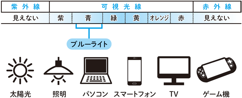 可視光線のなかでも波長が短い光線で、エネルギーが強い光。網膜まで届きやすい。