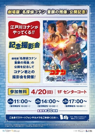 4月20日(日)に1階センターコートで各回先着30名様を対象に記念撮影会を開催します。当日は名探偵コナンと一緒に写真撮影が可能です。 開催日時:2025年4月20日(日)