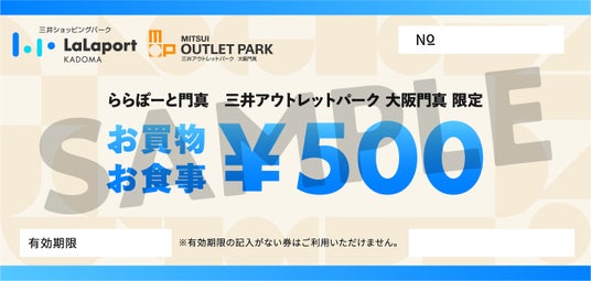10万円分の「ららぽーと門真・三井アウトレットパーク 大阪門真」専用お買物券 3名様
