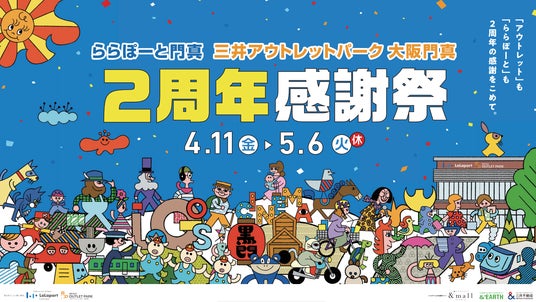 ※4月7日(月)公開 ■2周年感謝祭 企画3.施設内の87店舗を対象とした2周年感謝特典 4月18日(金)から5月6日(火・休)の期間、ららぽーと門真では、2周年の感謝を込めて施設内の87店舗を対象とした最大80%OFFとなる「ららぽーと門真 2周年SALE」を開催します。