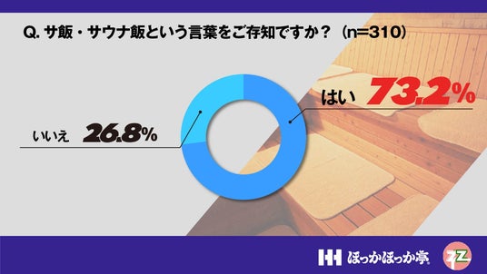 そして前問の回答でも見られましたが、サウナの後の食事を楽しんでいる方もいます。実際に「サ飯」という言葉の認知度は、7割を超えていて、サウナや温浴施設上がりに、そのまま食べる方が半数を超えていました。