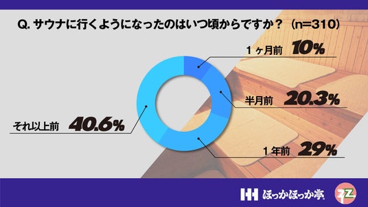 また、サウナの開始時期は最近というよりは、以前から通っている方が多いようです。第三次サウナブームとも言われますが、長く定着しているように読み取れます。