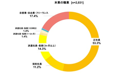 調査対象:タイミーの働き手のうち本業が「会社員」「会社役員」「公務員」「自営業・自由業」の2,031名