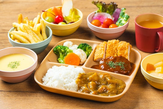 大人と同じブッフェ料理に加えて、キッズが大好きなハンバーグや辛くないカレーも