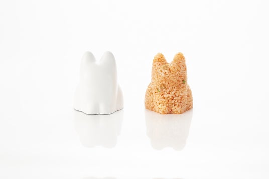 バイオマスプラスチックを使用したカップ。ごはんの盛り付けを子猫の型にしたり、子猫型のゼリーやプリンを作ったりできます。