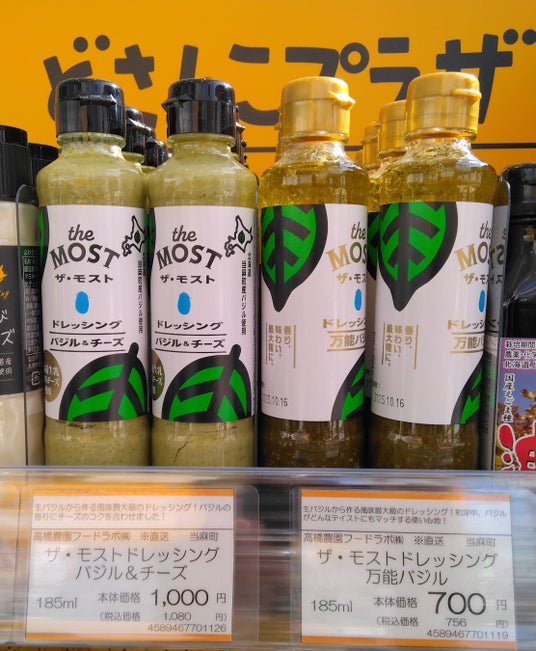 (左から)高橋農園フードラボ「ザ・モストドレッシング バジル&チーズ」「ザ・モストドレッシング 万能バジル」