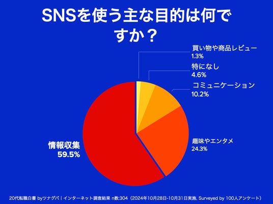 株式会社ツナグバ(所在地:東京都千代田区、代表取締役社長:仲村正俊、以下ツナグバ)は、2024年10月28日から10月31日にかけてインターネット調査を通じて「20代のSNS利用実態に関するアンケート」を実施しました。