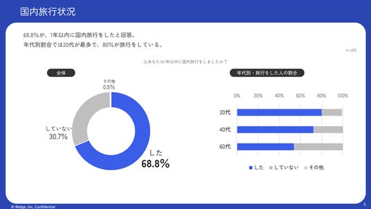 企業のOMOアプリの開発やマーケティングの支援、ソリューション導入において300以上の実績を持つ株式会社アイリッジ(本社:東京都港区、代表取締役社長:小田 健太郎、東京証券取引所グロース:3917、以下「アイリッジ」)は、20代・40代・60代の男女約200名を対象に「国内旅行に関するユーザー行動調査」を実施し、調査結果をまとめましたのでお知らせします。