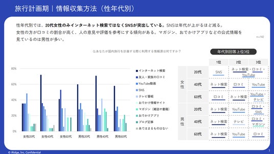 旅行計画期の情報収集方法は、20代女性でSNSが突出。利用SNS詳細では、20代はInstagramが1位に