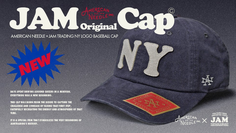 国内最大級の海外古着専門店「古着屋JAM VINTAGE&SELECT(ジャム ヴィンテージアンドセレクト)」を運営する株式会社JAM TRADING(本社:大阪府大阪市、代表取締役:福嶋政憲)は、2026年12月に迎える創業20周年を前に、自社の歩みを振り返る中で生まれた別注商品「AMERICAN NEEDLE × JAM TRADING NY LOGO BASEBALL CAP」を発売します。本発売の5月8日(金)に先駆け、2026年4月21日(火)より公式オンラインショップにて先行販売を開始します。なお、こちらの商品は数量限定の販売となります。
