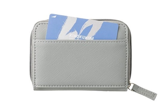 人気スーパーマーケットKINOKUNIYAのロゴがデザインされたグレーのミニ財布は老若男女誰でも使いやすく、シンプルななかに親しみが感じられるデザインです。
