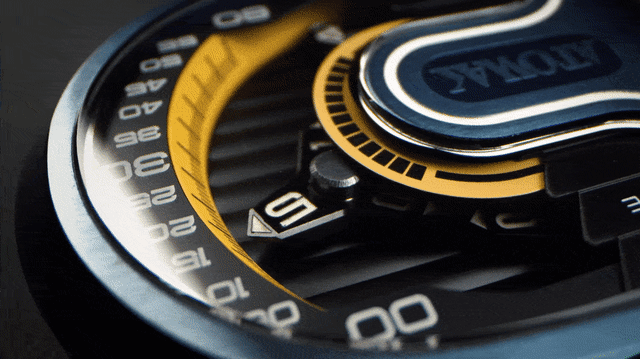 レーストラックを彷彿とさせる流線型デザインでカーレースでの感動やスピード感を最大限腕時計に融合。アクセルを踏み込んだ時のメーターのように動く時計の針は時間を見る度に心を躍らせます。