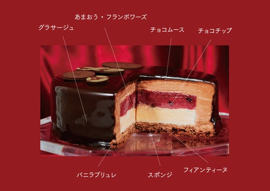2024年のクリスマスは「あまおう苺×バニラ×チョコレート」幾層にも重なる、とろける美味しさのチョコレートケーキです。