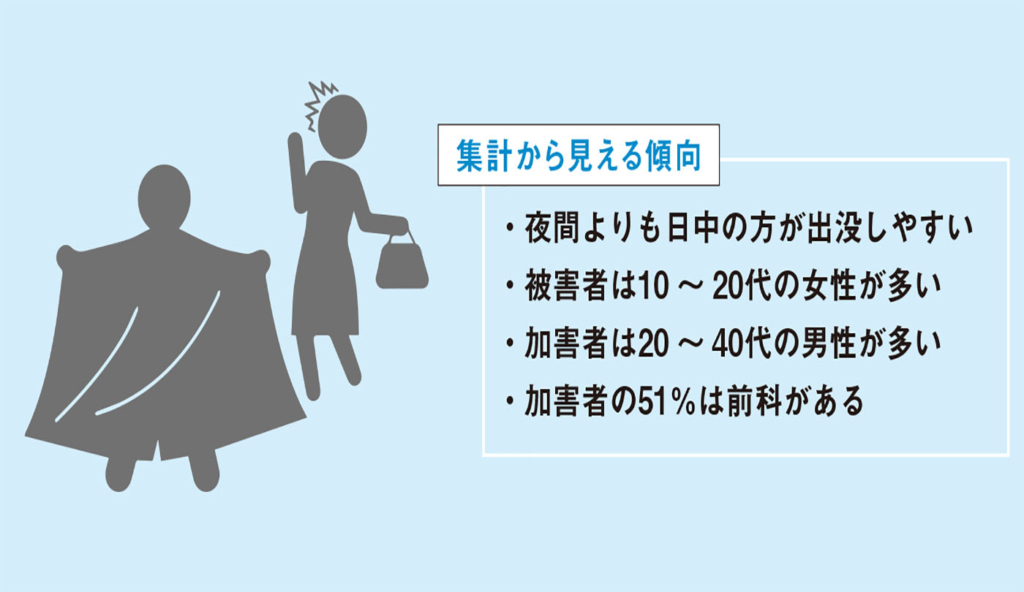 日本の性犯罪の中でも特に多い?!露出犯が出やすい時間や場所は?【図解 犯罪心理学】