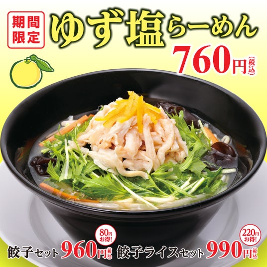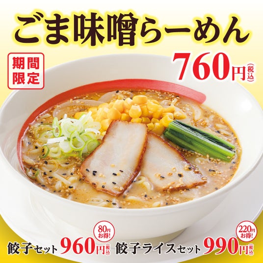 2025年1月9日(木)より、ゆずの香りと野菜の甘みを楽しめる「ゆず塩らーめん」 と、ごまをふんだんに使用した濃厚でコクのある「ごま味噌らーめん」をそれぞれ760円にて期間限定販売いたします。