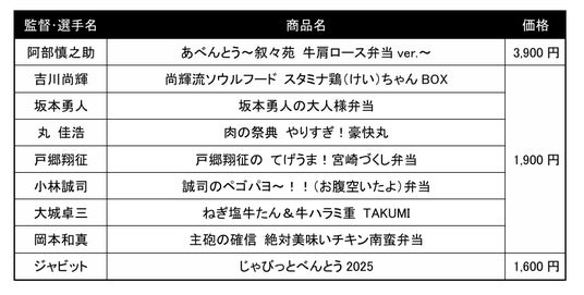 2025年 東京ドーム 監督・選手プロデュース弁当&グルメ商品情報-今年も新たなお弁当&グルメが登場-