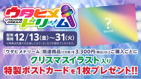 SHIBUYA TSUTAYA「ウタヒメドリーム」公式ショップにてクリスマスキャンペーンの実施が決定!新規描き下ろしの応援イラストを使用したポストカードを配布!