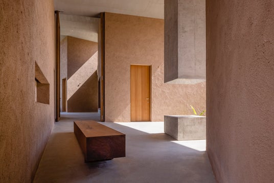 南城市、斎場御嶽と久高島に程近く崖の上に佇む個人邸。光と風を取り込む設計により、自然との繋がりを感じさせる空間が広がる。設計・施工は紀建設 Studio Bespoken(設計士 井出真太郎)。