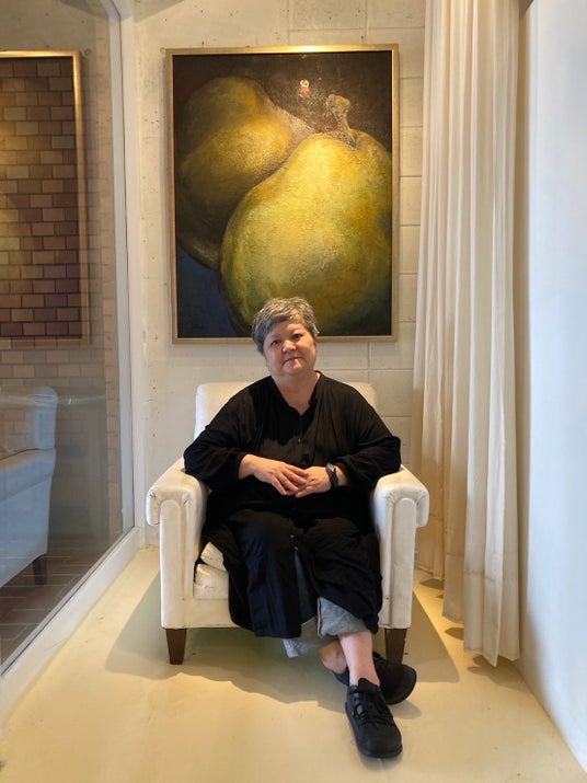 私は絵を描く。目の前に実在のモデルやモチーフを置かず、記憶のパーツを浮かび上がらせパズルのように組み合わせる。一枚の絵には過去と未来が混在し、時間が積み重なる。見る人の想像力で、自由な解釈と多様な物語が広がっていくことも喜び楽しみとしている。