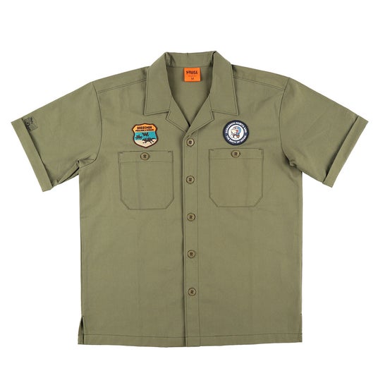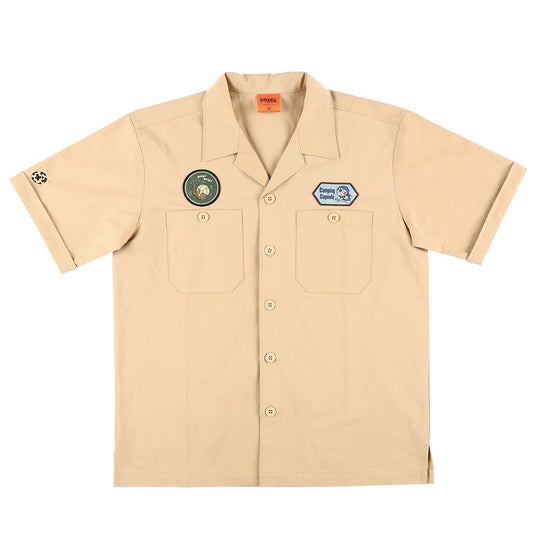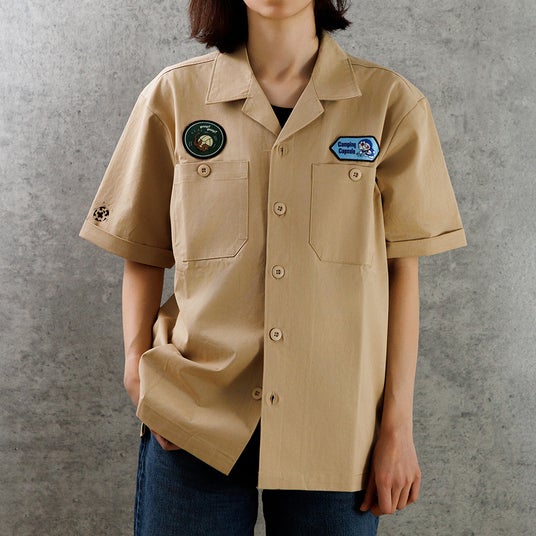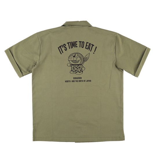 着用イメージ(モデル身長/170cm、着用/Lサイズ) 『大長編ドラえもん』の各作品をモチーフにした、ミリタリーテイストのワークシャツです。「陸・海・空」がテーマの各作品を表現したワッペンや背面に大きくデザインされたバックプリントのドラえもんが特徴的です。ワークテイストやスポーティーなスタイルなど、お手持ちのアイテムとの組み合わせ次第でさまざまな系統のコーディネートをお楽しみいただけます。 商品名:ドラえもん未来デパートオリジナル 大長編 ワッペンワークシャツ M/L/XL