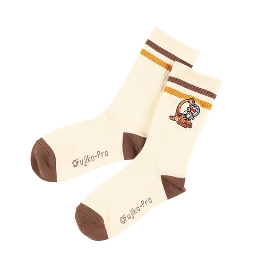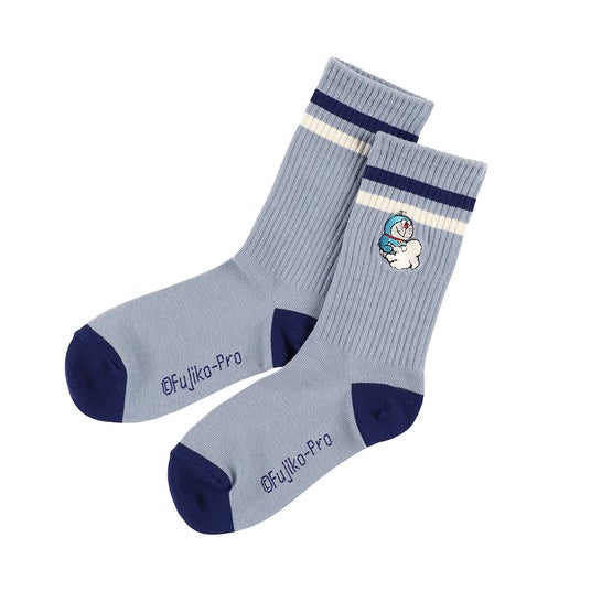 のび太と雲の王国 ネイビー 2色のラインとドラえもんの刺繍がアクセントになった遊び心のあるデザインのラインソックスです。統一感のある色遣いとかわいらしい刺しゅうがファッションのアクセントとして活躍してくれます。ワークシャツとの組み合わせでコーディネートをお楽しみいただくのもおすすめです。 商品名:ドラえもん未来デパートオリジナル 大長編 刺繍ラインソックス