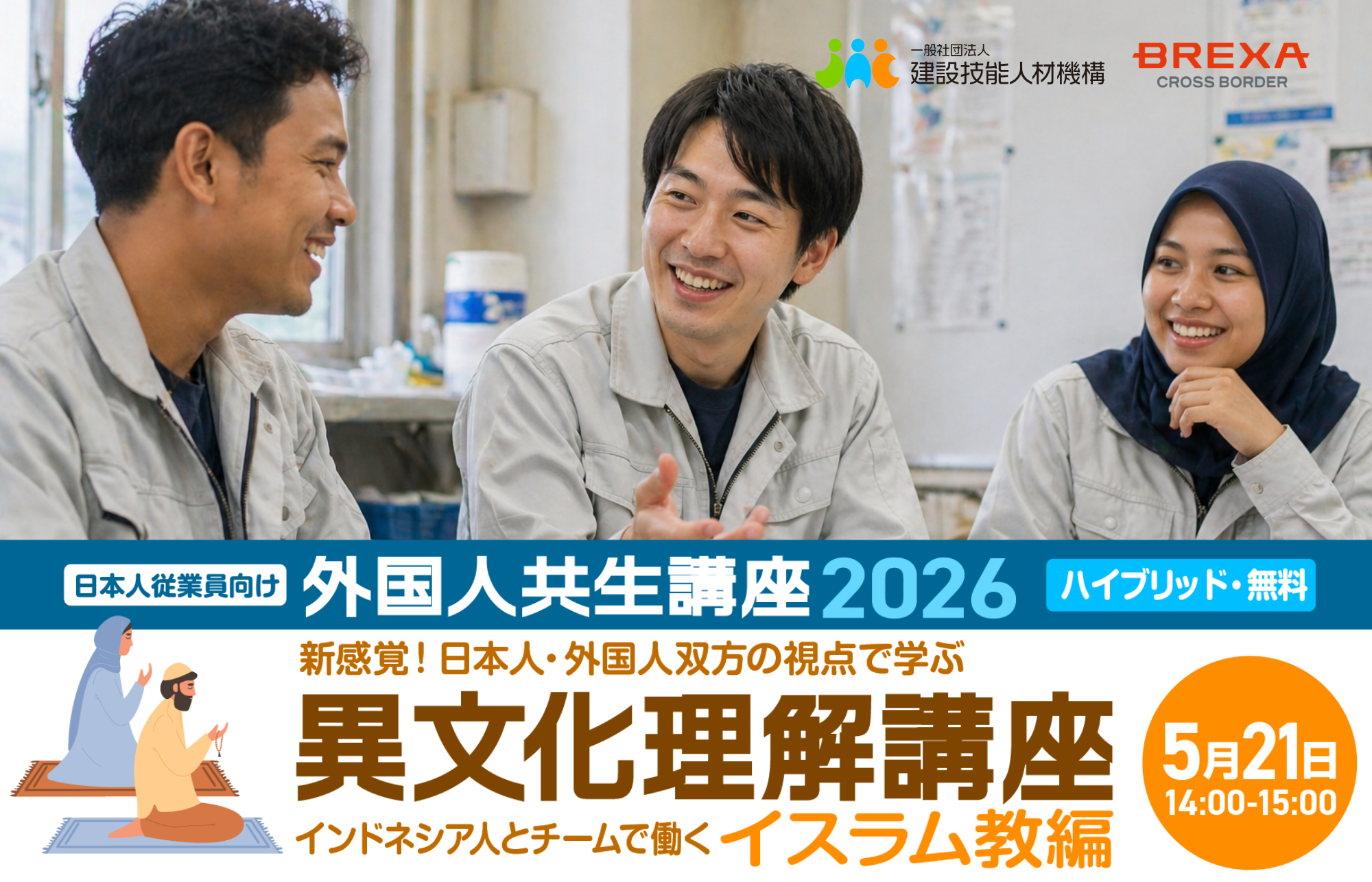 2026年度 外国人共生講座 「異文化理解(1) インドネシアとイスラム教」、5月21日(木)14時~【BREXA CrossBorder / 建設技能人材機構】