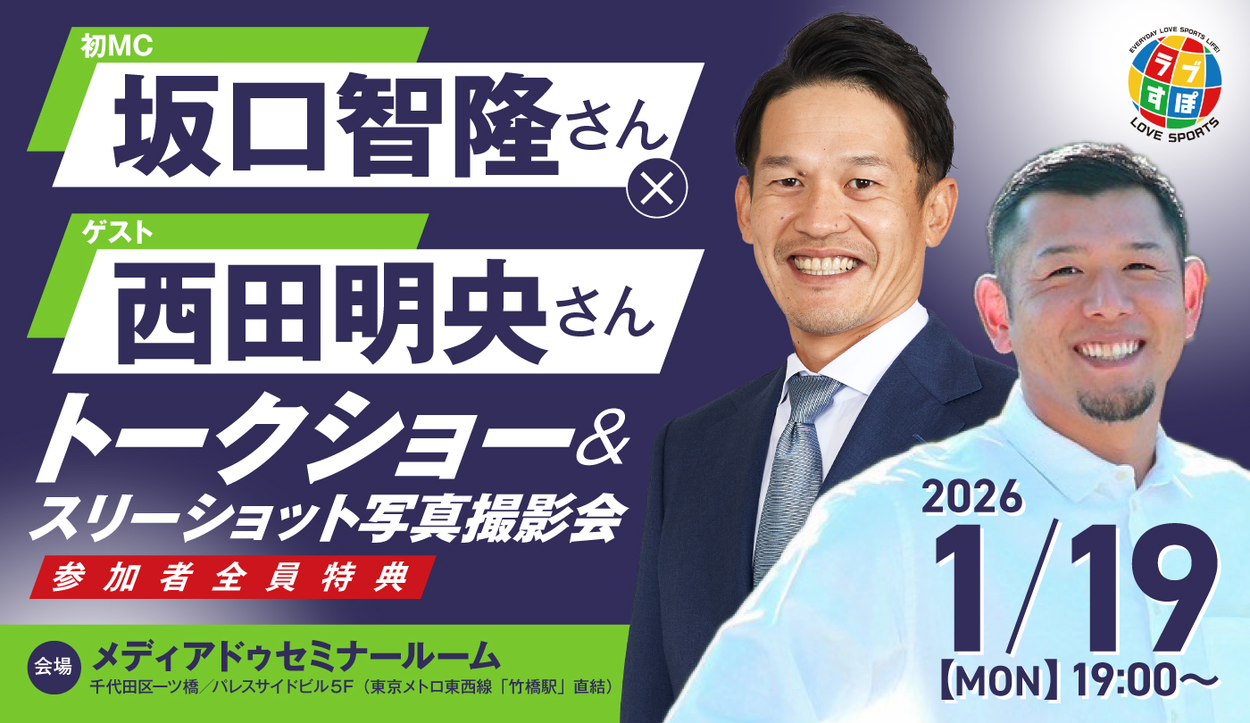 2026年1月19日(月)19:00~開催決定【元東京ヤクルトスワローズ】坂口智隆さん×西田明央さんトークショー&スリーショット撮影会!!