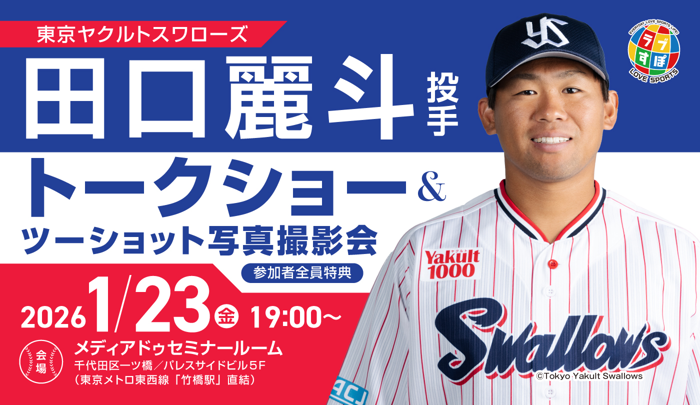 2026年1月23日(金)19:00~開催決定【東京ヤクルトスワローズ】田口麗斗投手トークショー&ツーショット撮影会!!
