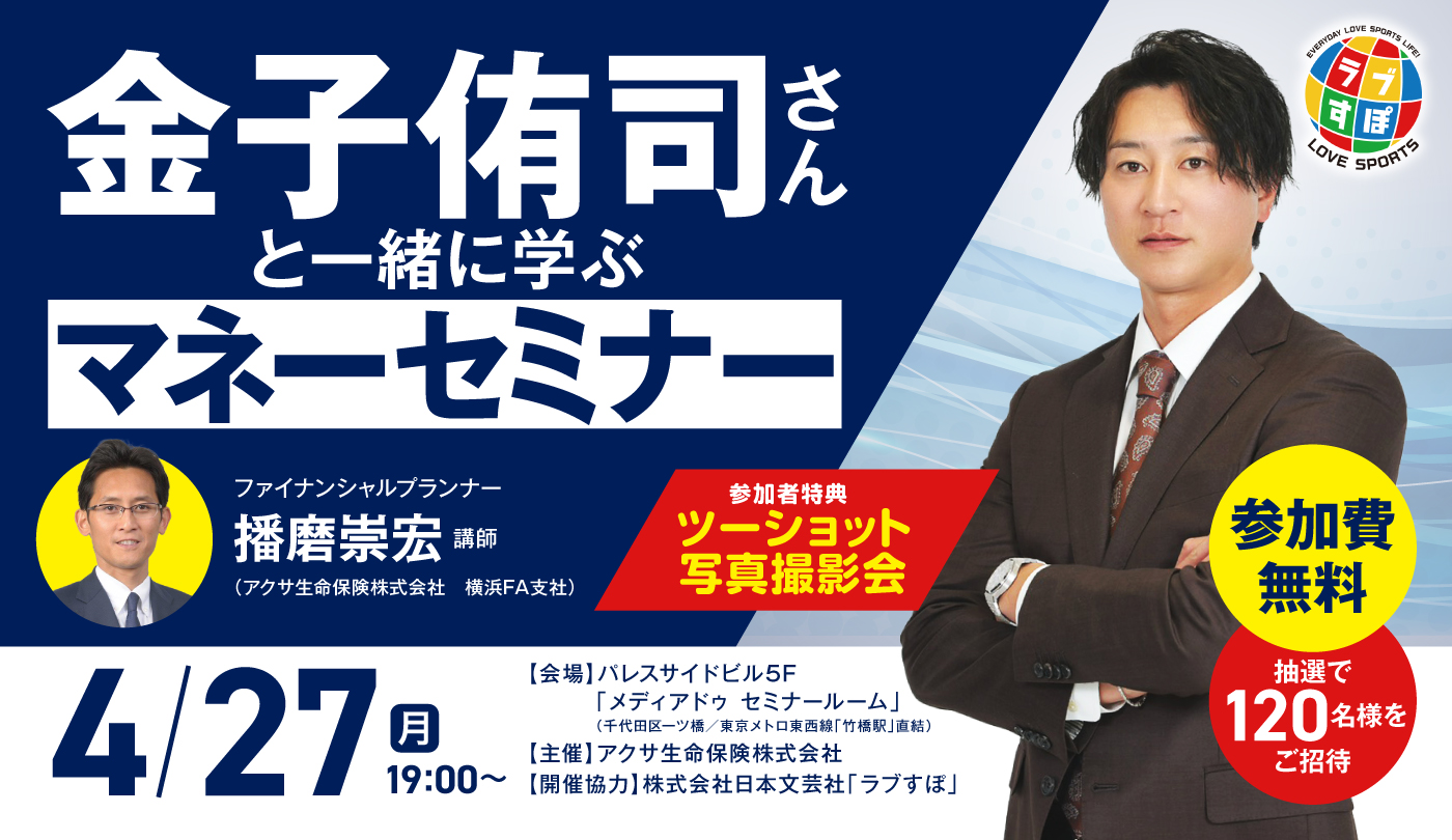 【アクサ生命プレゼンツ/抽選で120名様を無料ご招待】金子侑司さんと一緒に学ぶ“お金の基本”『ラブすぽ』マネーセミナー!!4/27(月)19:00~開催!!