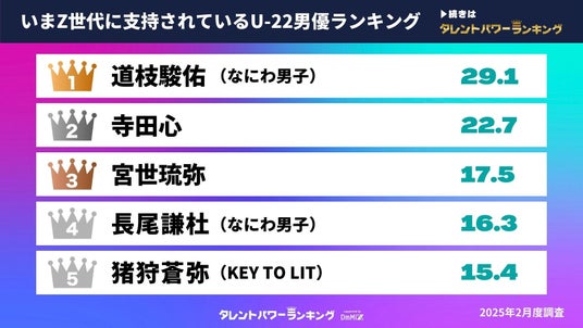 『タレントパワーランキング』では、タレントパワーランキングに登録されている22歳以下の男優について、Z世代(10代~20代前半の男女)が回答した結果を調査。