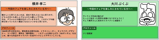 デフォルメロボットフェアでは、横井孝二が描き下ろしたキービジュアルや大川ぶくぶのイラストを使用したオリジナル新商品を販売します。