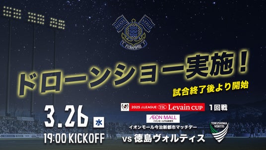 FC今治で開催する、2025年3月26日(水)開催の2025JリーグYBCルヴァンカップ 1stラウンド1回戦(vs 徳島ヴォルティス)の試合終了後に、KDDI株式会社の協賛により、ドローンショーの実施が決定しました。ドローンショーの実施はクラブとして初となります。