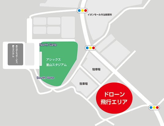 ※周辺からでもご覧いただけますが、スタジアム正面になるように計画しているほか、現地では音楽との連携もお楽しみいただけます。ドローンショーをお楽しみいただくために、ぜひ試合観戦チケットをご購入いただき、スタジアム内でご鑑賞ください。