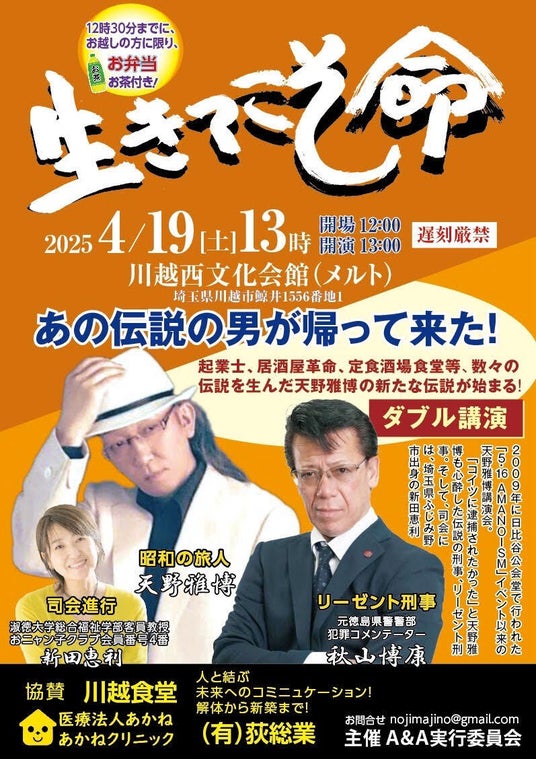 「警察24時」シリーズ、「サンデージャポン」(TBS)等でおなじみのリーゼント刑事こと秋山博康(元兵庫県警警部・犯罪コメンテーター)とのダブル講演。