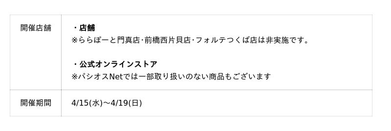 [4/15(水)~4/19(日)]【パシオスの暮らし応援宣言】をファッションプラザ[パシオス]にて開催!
