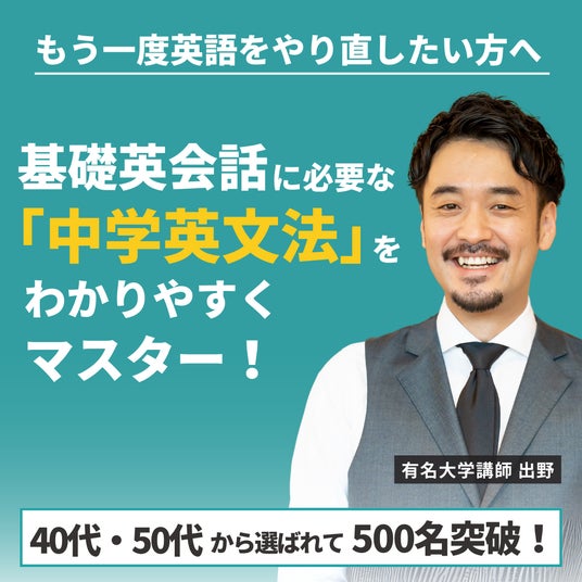特に40代・50代で、改めて英語を基礎から学び直したい方を対象にしたものです。私たちは、「英語は基礎がわかれば上達できる」という確信のもと、挫折しがちな大人の英語学習を支援し、海外旅行やビジネス、インバウンドにも対応できる英語力を身につけられる「正しい学習方法」を伝えることを使命としています。