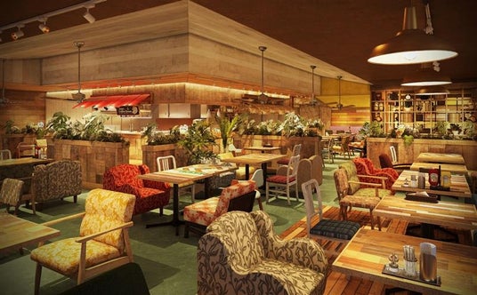 カラフルなハワイアン雑貨やサーフボードが飾られ、遊び心のあるソファやテーブルなどのこだわりのインテリアが、まるで、ハワイのローカルのリビングにいるような雰囲気を演出します。ゆったりとくつろげる空間で、日本にいながらハワイ気分を味わえます。