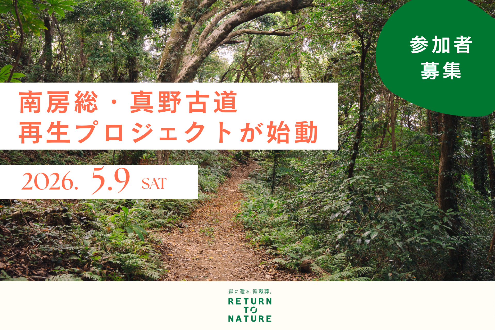 at FOREST株式会社(本社:兵庫県神戸市、代表取締役CEO:小池友紀、以下:at FOREST)が運営する循環葬(R)︎RETURN TO NATURE at 真野寺(南房総市)にて、人々の記憶から忘れ去られていた「真野古道」を再生するプロジェクトを始動します。