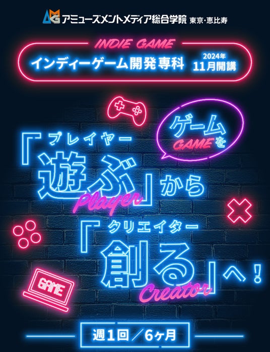 エンタメ業界のプロを育成するアミューズメントメディア総合学院(東京都渋谷、理事長:吉田尚剛、以下 AMG)は、『インディーゲーム開発専科』を2024年11月に開講することをお知らせします。