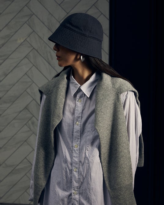 バケットハットよりもブリムの角度が下向きのハットで深い着用感が特徴。