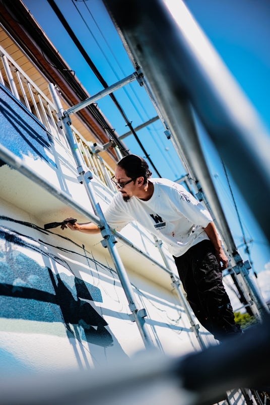 ライブペイントなどをきっかけに出来た新しい仲間達や仕事の繋がりから、店舗などへの壁画を描くようになり、サイズの大きな壁画を描く楽しさを自身に見つける。