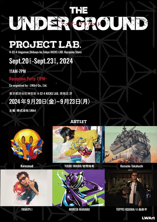現代アートのグループ展・企画展を中心に展開する株式会社LWArt(本社:東京都大田区、代表取締役:小川将司、以下「LWArt」)は、「KICKS LAB.2F PROJECT LAB.(プロジェクト ラボ)」にて、総勢6組のアーティストによるグループ展「THE UNDER GROUND(ザ・アンダーグラウンド)」を9月20日(金)~9月23日(月)に開催。